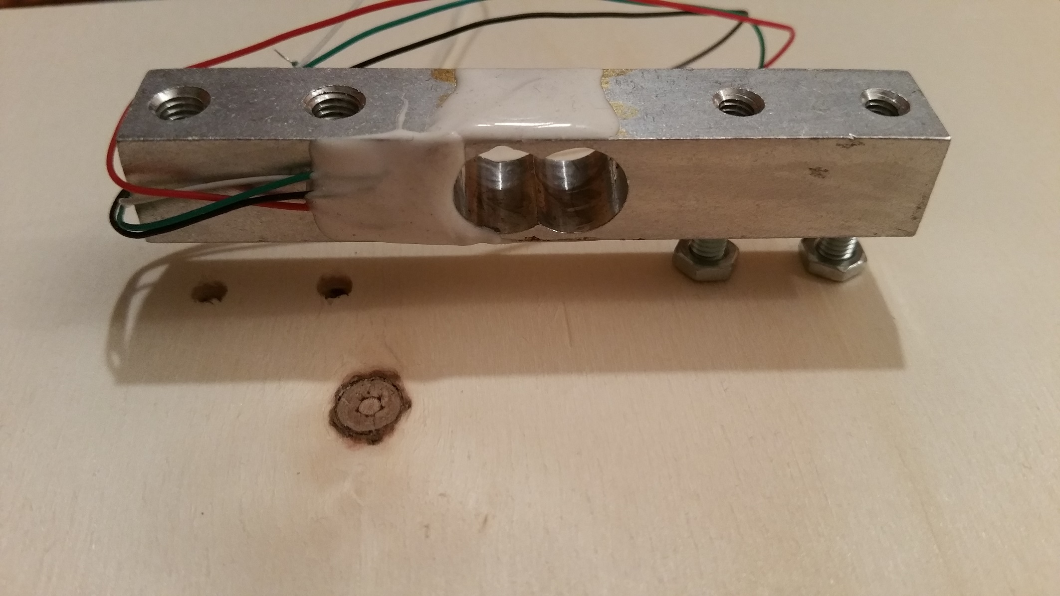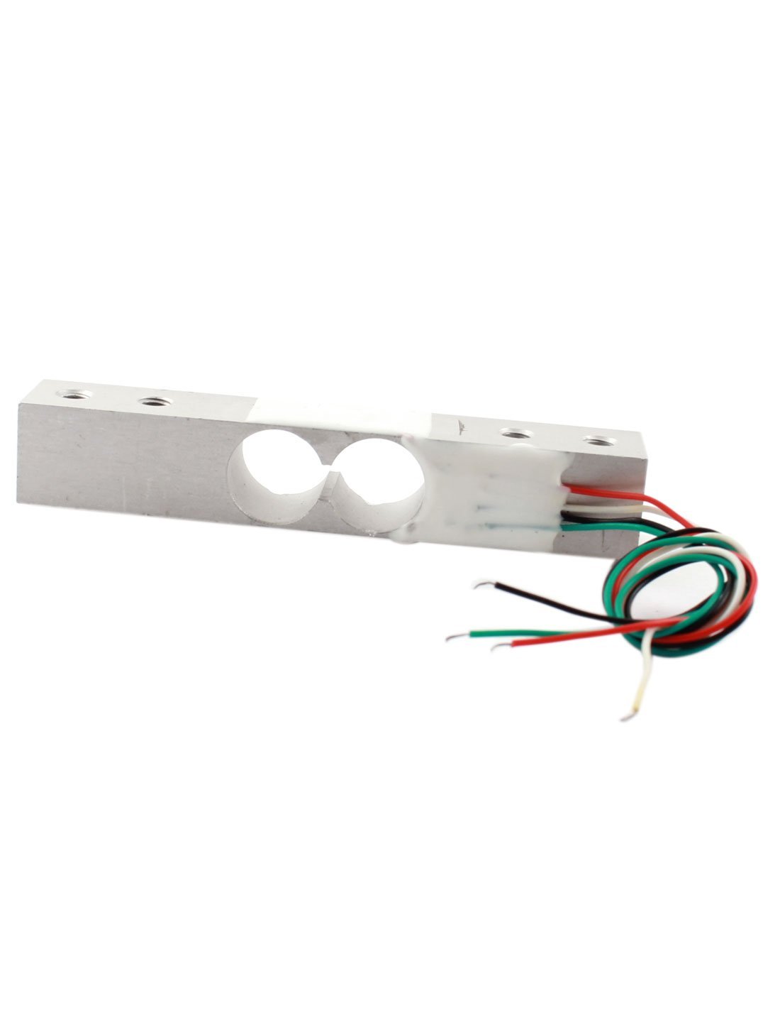 La chose la plus importante pour construire votre propre balance est une » balance de charge « , qui est une barre de métal avec un trou au centre (voir photo à droite). Elle est disponible pour différentes catégories de poids (jusqu’à 1 kg, jusqu’à 5 kg, jusqu’à 50 kg, etc.). Même si certains ont une forme différente, tous sont fournis avec quatre câbles. Pour lire les valeurs, le capteur de poids HX711 est également nécessaire. Ce capteur est disponible en deux versions : rouge et vert. Les capteurs de pression présentent probablement de petites différences, mais sont – théoriquement – tous deux compatibles. J’ai utilisé le HX711 vert. Il faut aussi du matériel de fixation.